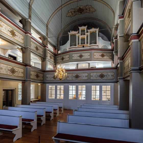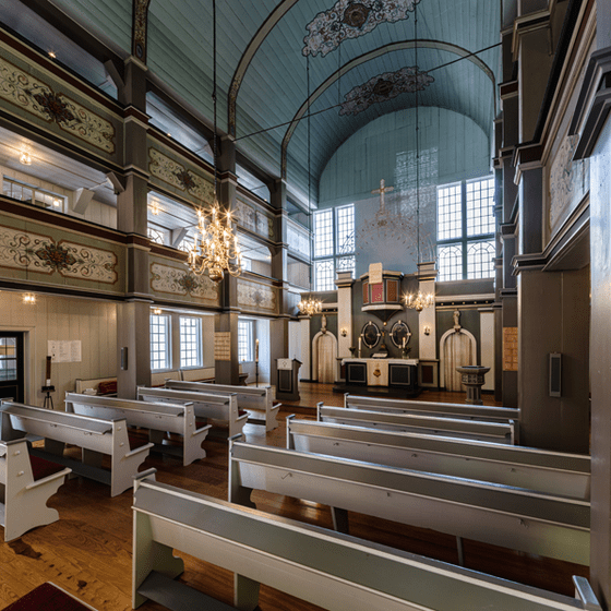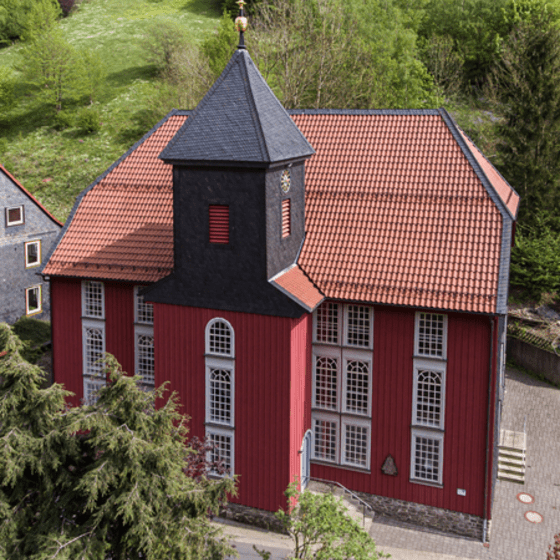 Im Ort befinden sich vielfältige Zeitzeugen des Bergbaues. Entlang der Eisensteingruben kann man sich einer Wanderung anschließen und am Ende der Wanderung diese historische Kirche besichtigen. Darin befindet sich ein Kreuz und ein Taufbecken, das aus dem Material des Roteisensteins in der Lerbacher Hütte gebaut wurde. Eine wunderschöne hölzerne Raumverkleidung, die historischen Bänke, die Säulen, können gerne bei dem „Sonntagsglück“, ein Gottesdienst Format mit viel Gemeinschaftsleben, besichtigt werden.